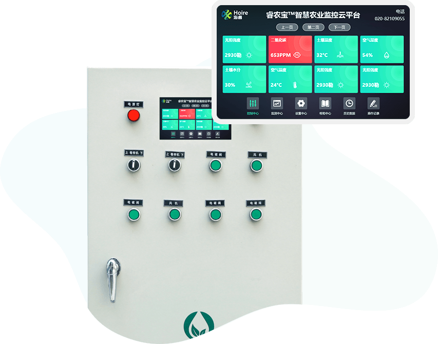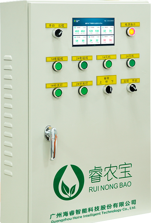 智能電氣控制柜可用于對設(shè)施農(nóng)業(yè)內(nèi)的各種設(shè)備進行集中管理,包括風(fēng)機、卷簾機、日光燈、灌溉器等。控制柜內(nèi)置GPRS模塊,可與云服務(wù)器相連,通過“睿農(nóng)寶”APP可以各個獨立的設(shè)備進行遠程控制。