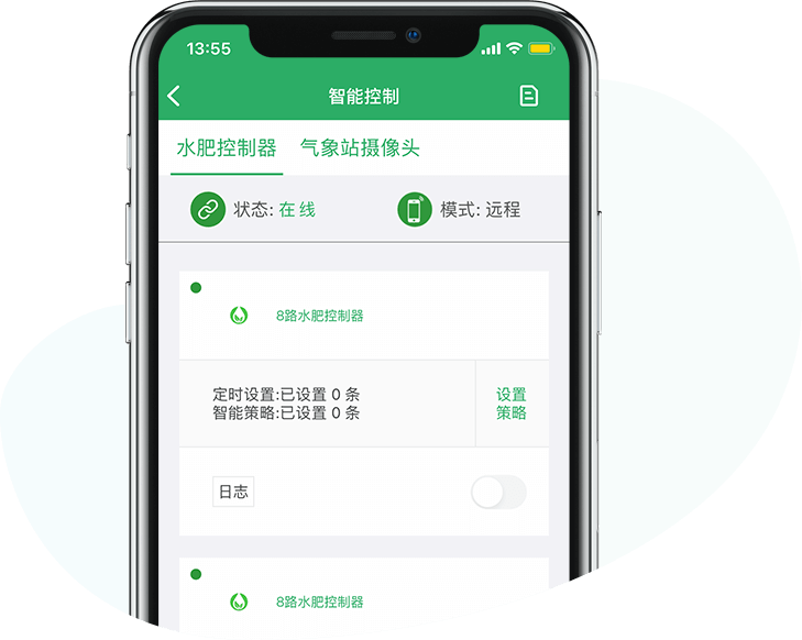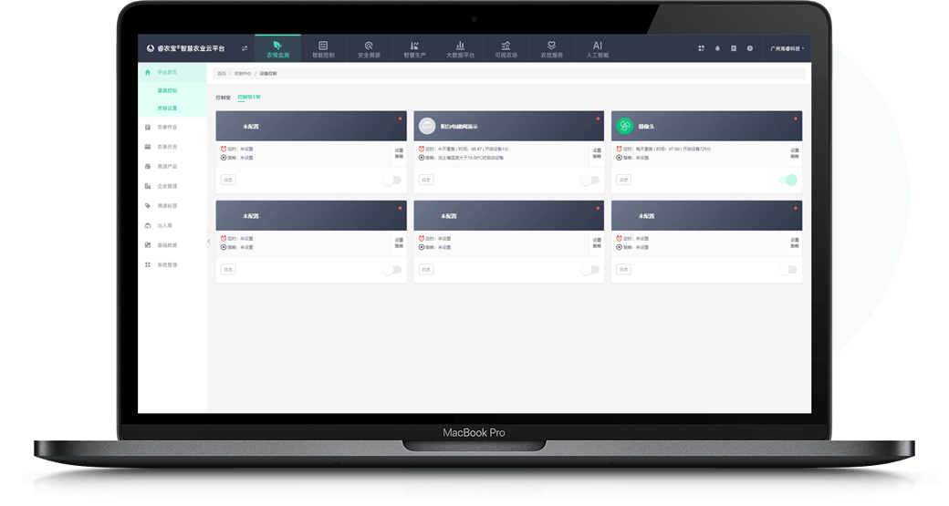 通過睿農(nóng)寶APP,可以對設(shè)備進行遠程控制。同時還可以通過APP設(shè)置智能控制策略,可以實現(xiàn)定時、定點的控制設(shè)備。結(jié)合“睿農(nóng)寶”環(huán)境監(jiān)測設(shè)備,還可以根據(jù)現(xiàn)場環(huán)境情況進行智能控制。例如當溫度過高時打開風(fēng)機,當光照不足時打開日光燈等,實現(xiàn)自動化生產(chǎn)管理。